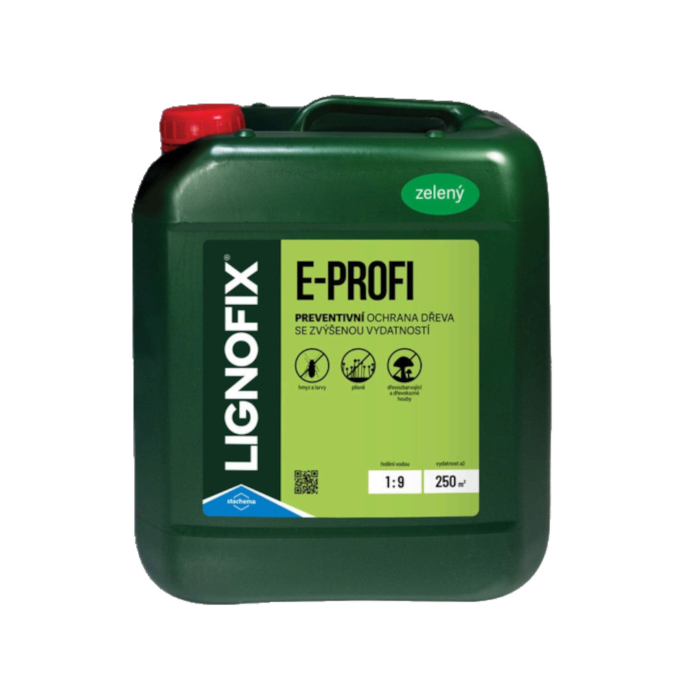 Lignofix E-Profi je koncentrovaný kapalný přípravek s preventivním účinkem proti dřevokaznému hmyzu (např. červotoč, tesařík), dřevokazným houbám (např. dřevomorka domácí), dřevozbarvujícím houbám a plísním. Je určen k povrchové impregnaci dřeva v interiérech (např. střešní konstrukce, podlahy) a v exteriérech bez přímého a trvalého kontaktu se zemí (např. střešní podbití, dřevěné stavby, ploty) a také k ochraně zdiva a omítek proti prorůstání dřevokaznými houbami.