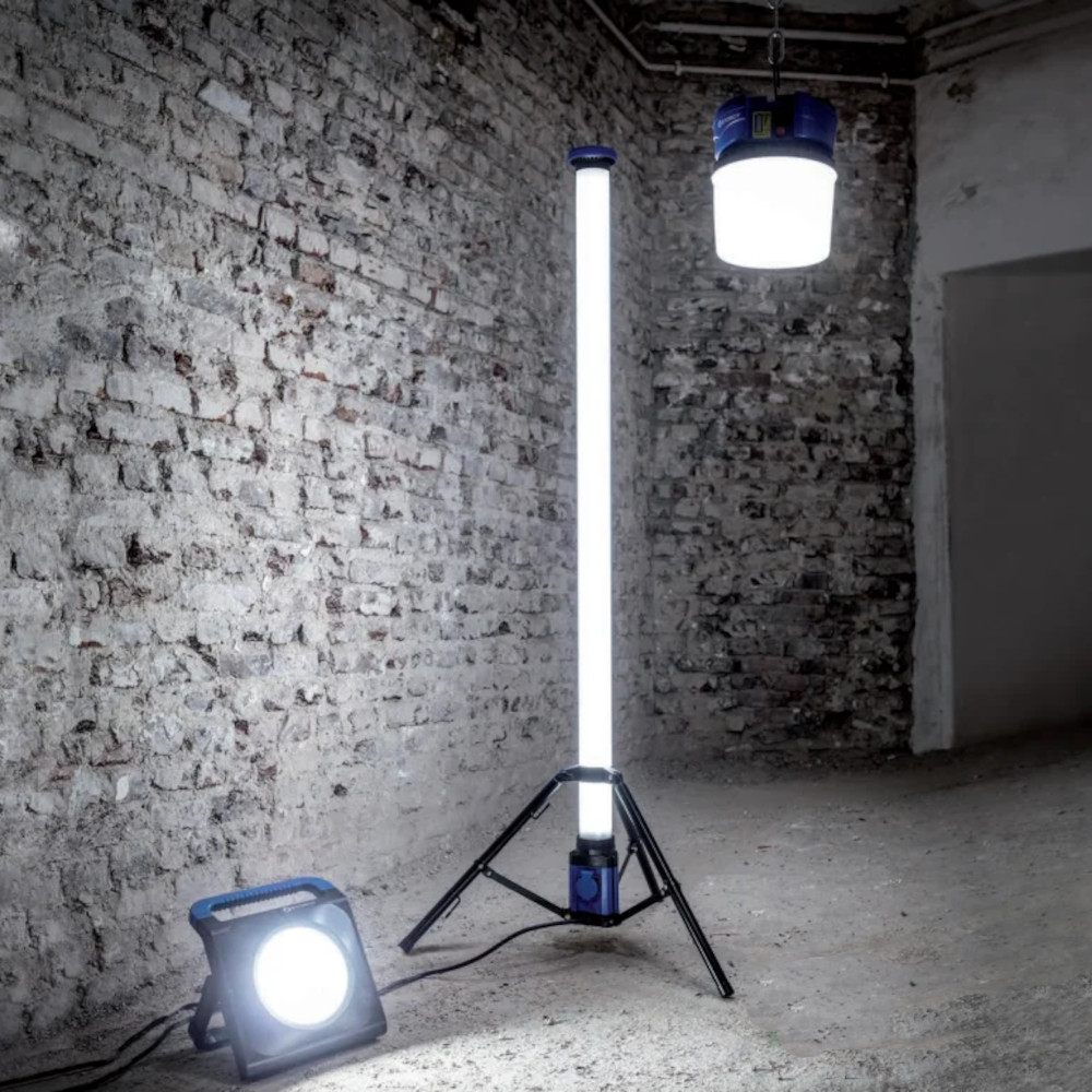 Osvětlení celého okolí (360°) s velice vysokým světelným výkonem. Celková výška 180 cm. Možnost napojení dalších přístrojů do integrované zásuvky. Ochrana proti stříkající vodě a prachu IP54.